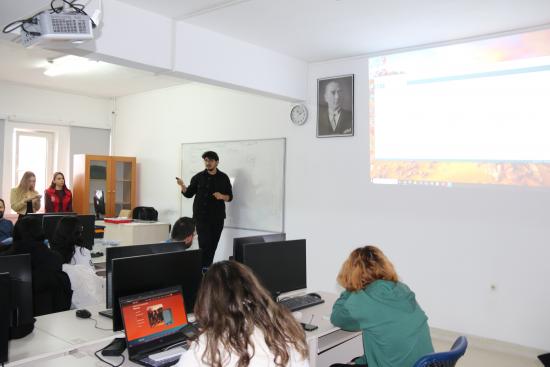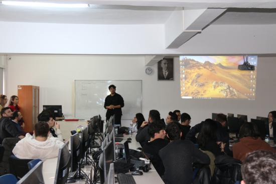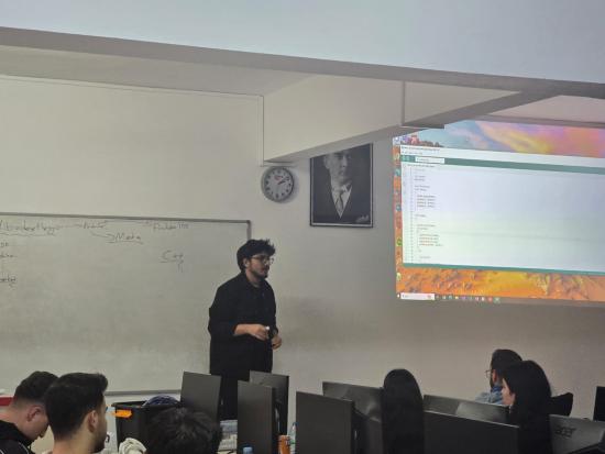 Bu kapsamda, 09 Aralık 2025 tarihinde dersin öğretim elemanı Öğr. Gör. F. Mustafa AKALP tarafından yürütülen Robotik Kodlama dersine özel konuklar katıldı. Deneyap Atölyesi Eğitmeni Furkan DURMAZ ve beraberindeki teknik ekip, derse konuk olarak katılarak Türkiye'nin yerli ve millî geliştirme kartı olan Deneyap Kart hakkında öğrencilere kapsamlı bir sunum yapıldı.